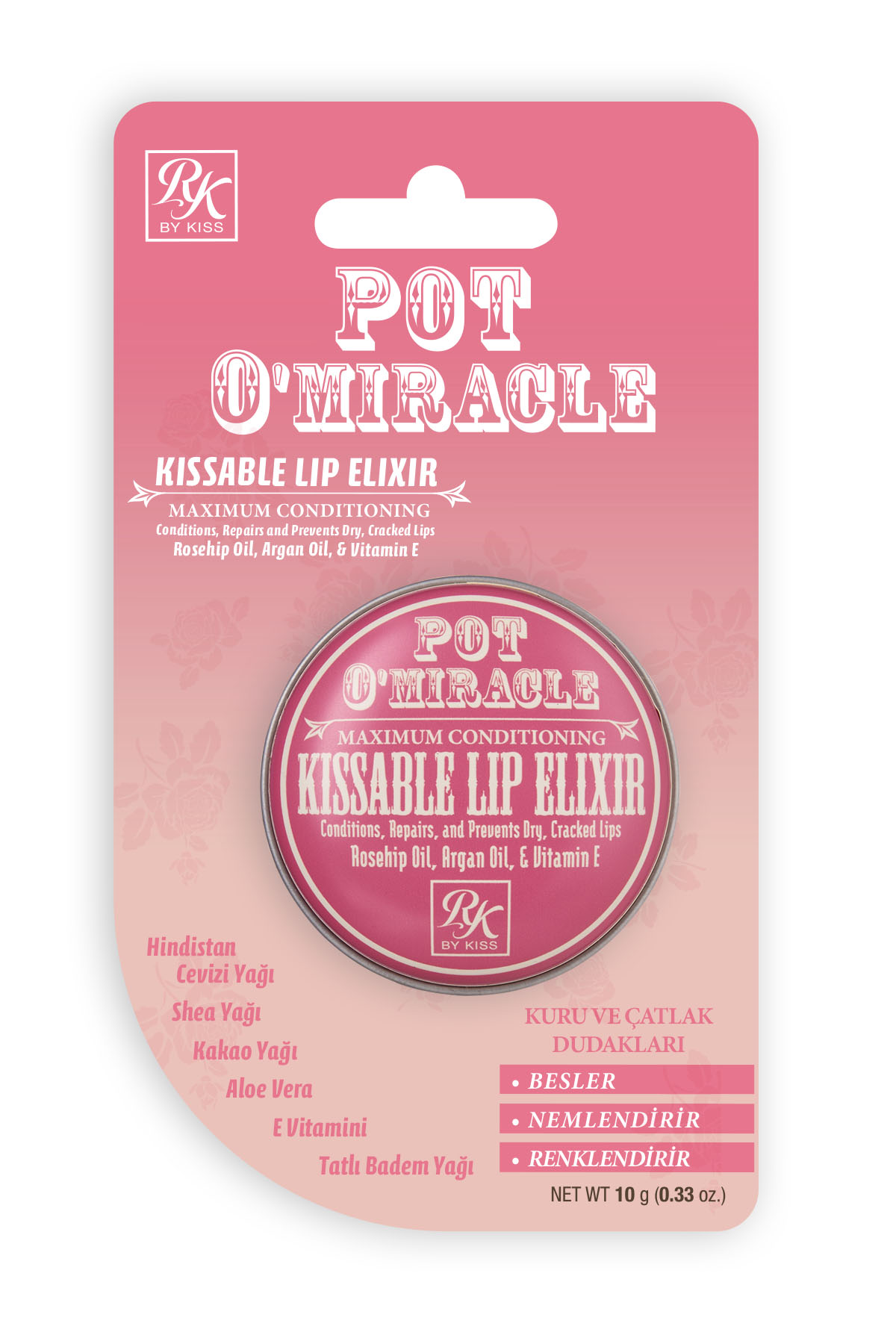 Pot O'Miracle Yoğun Nemlendirici, Renklendirici ve Onarıcı Dudak Bakımı Kuşburnu Yağı & Gül Özlü 10 G