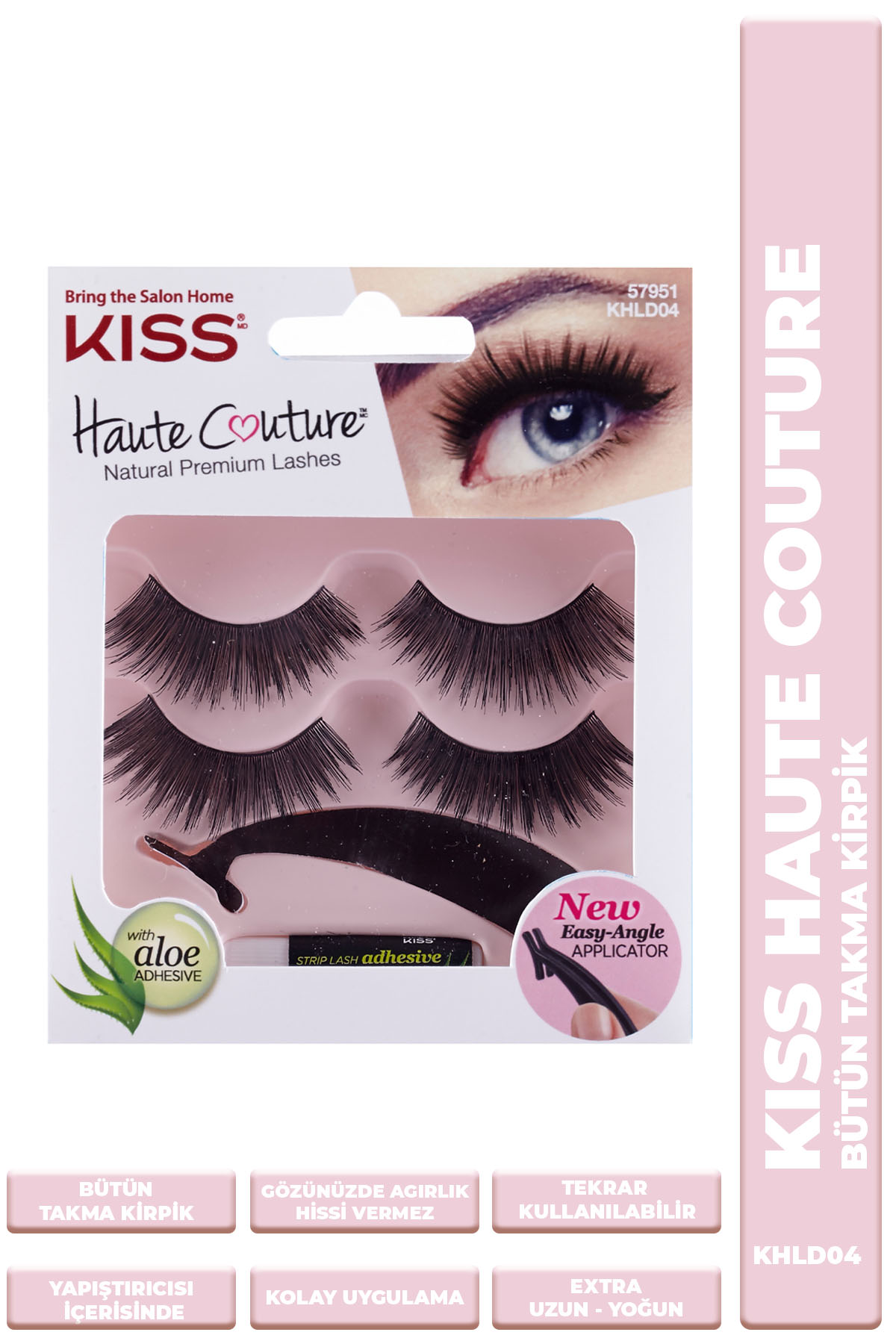 Kiss Haute Couture gözlerinizin doğal güzelliğini arttırmanızı, bakışlarınıza anlam kazandırmanızı sağlarTüm göz şekilleri için uygundurHer gün veya özel günler için kullanım idealdirKullanım şekli: Bir cımbız yardımıyla kirpiği kutudan çıkartınGerekli gördüğünüz takdirde kirpikleri yanlarından keserek göz şekline göre kısaltabilirsinizKirpiğin dip kısmını hizalayarak yapıştırıcıyı sürün, 20-30 saniye kadar bekleyin ve doğal kirpiklerinizin diplerini hizalayarak yapıştırınMaskara sürmeden önce 5 dakika bekleyinKirpikleri çıkartma: Gözünüzün dış kısmından başlayarak kirpikleri yavaşça çekerek çıkartınKirpik üzerinde kalan yapıştırıcıyı temizleyerek sonraki kullanımlar için kirpiği tekrar kutusunu yerleştirin