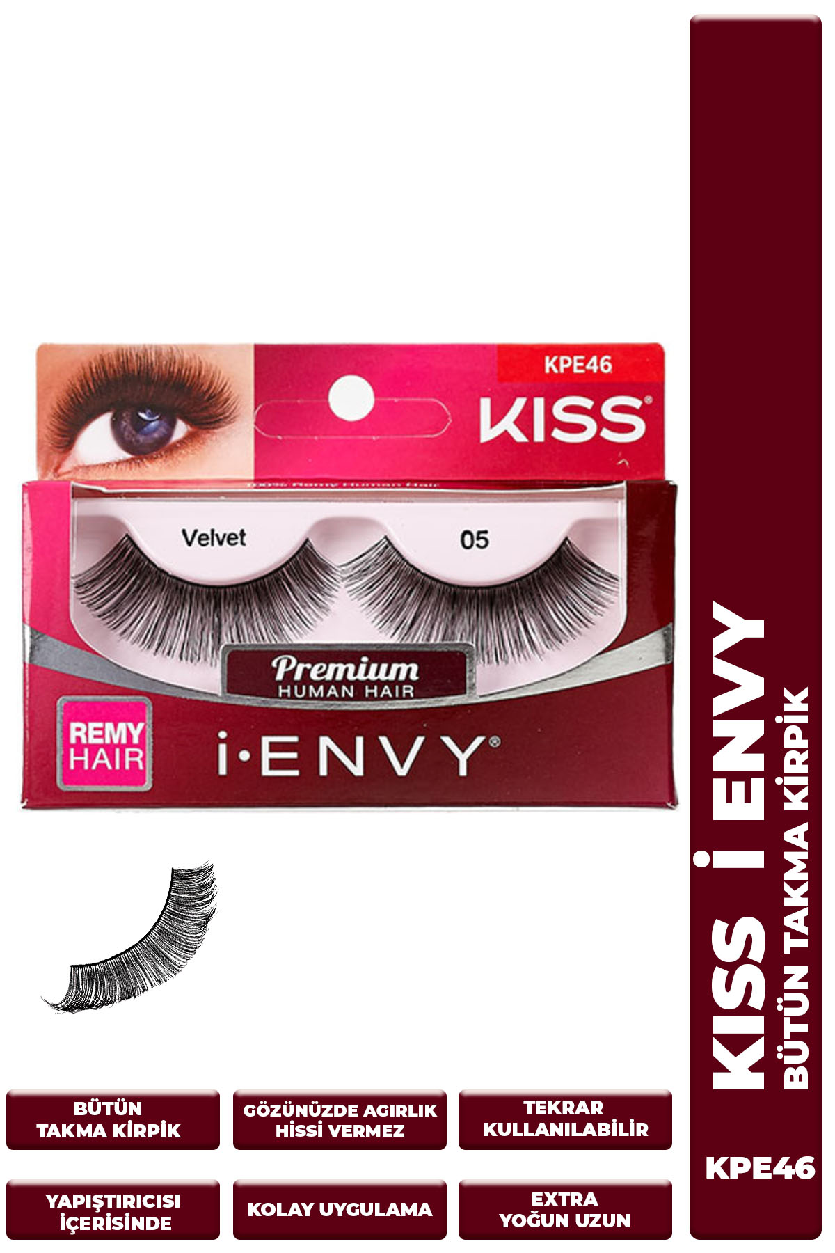 Yüzde yüz kaliteli insan saçından yapılmış olan Kiss i-Envy takma kirpik ince ve uyumlu dokusu ile her gün veya özel günlerde kullanım için idealdirSon derece hafif dokusundan dolayı göz kapağında ağırlık hissi yaratmazKullanım şekli: Bir cımbız yardımıyla kirpiği kutudan çıkartınGerekli gördüğünüz takdirde kirpikleri yanlarından keserek göz şekline göre kısaltabilirsinizKirpiğin dip kısmını hizalayarak yapıştırıcıyı sürün, 20-30 saniye kadar bekleyin ve doğal kirpiklerinizin diplerini hizalayarak yapıştırınMaskara sürmeden önce 5 dakika bekleyinKirpikleri çıkartma: Gözünüzün dış kısmından başlayarak kirpikleri yavaşça çekerek çıkartınKirpik üzerinde kalan yapıştırıcıyı temizleyerek sonraki kullanımlar için kirpiği tekrar kutusunu yerleştirin