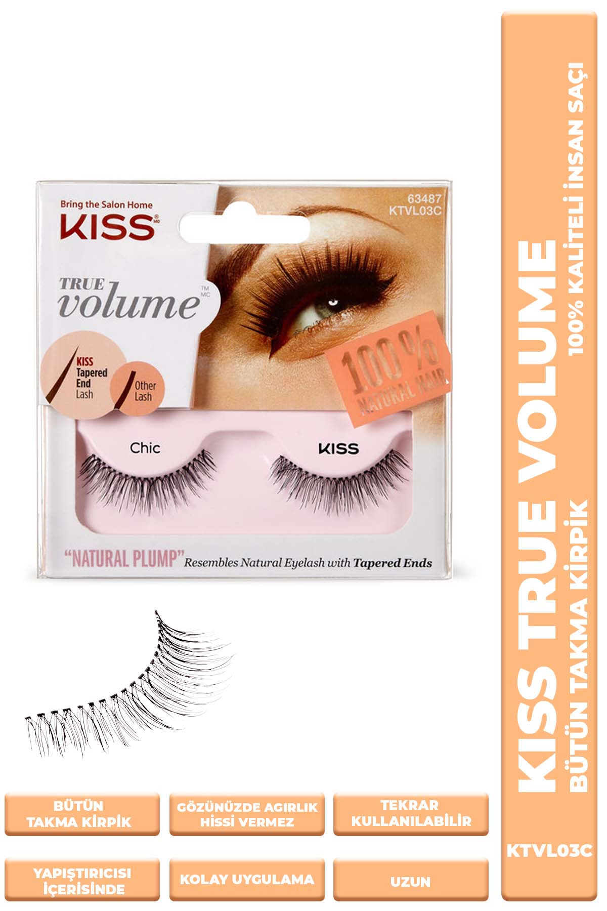 • True Volume komple takma kirpikler %100 insan saçından yapılmıştır. • Konik Uçlu Kirpik Teknolojisi ile piyasadaki en hafif ve en doğal kirpiklerin kendi kirpiklerinizle kusursuz bir şekilde karışmasını sağlar. • Aynı anda daha doğal ve daha dolgun bir görünüm sağlar. • Esnek Kirpik bandı sayesinde uygulama sonrasında gözlerinizde hafif ve rahat bir his bırakır. • Kutu içerisinde yapıştırıcısı mevcuttur. • Özel proteinli yapıştırıcısı ile kirpik diplerinize bakım yapar. • Kolaylıkla takılıp, çıkartılır ve mevcut kirpiklere zarar vermez. • Kutu ile birlikte kullanma kılavuzu içerisindedir. • Tüm göz şekilleri için uygundur. • Her gün veya özel günler için kullanım idealdir.